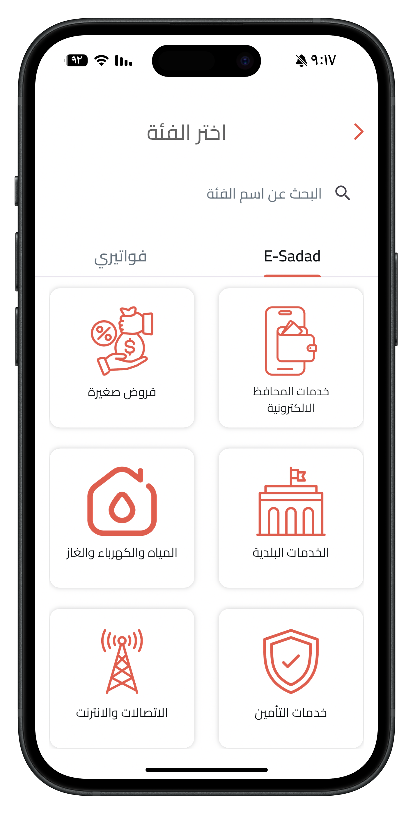 - دفع الفواتير عبر E-SADAD (الكهرباء، الماء، الانترنت ...)