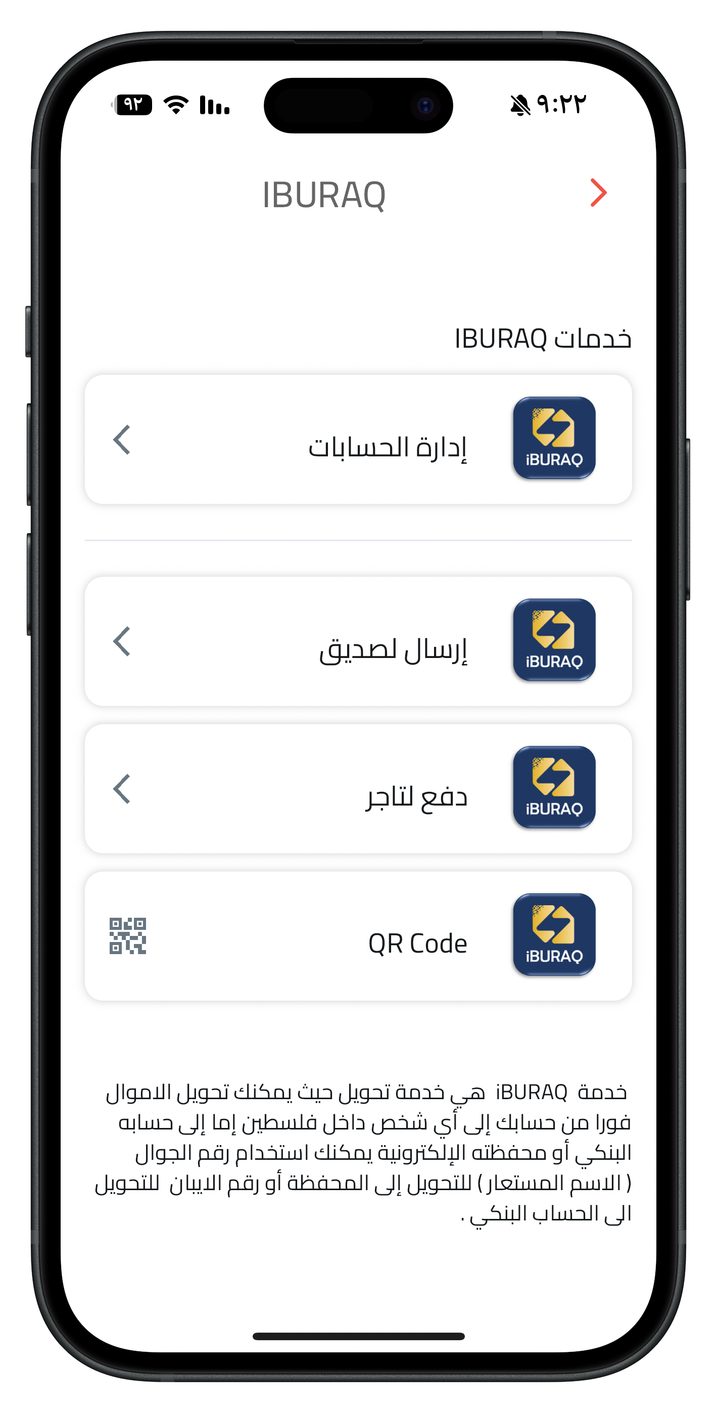 - تحويل الأموال فوراً عبر خدمة ¡BURAQ داخل فلسطين